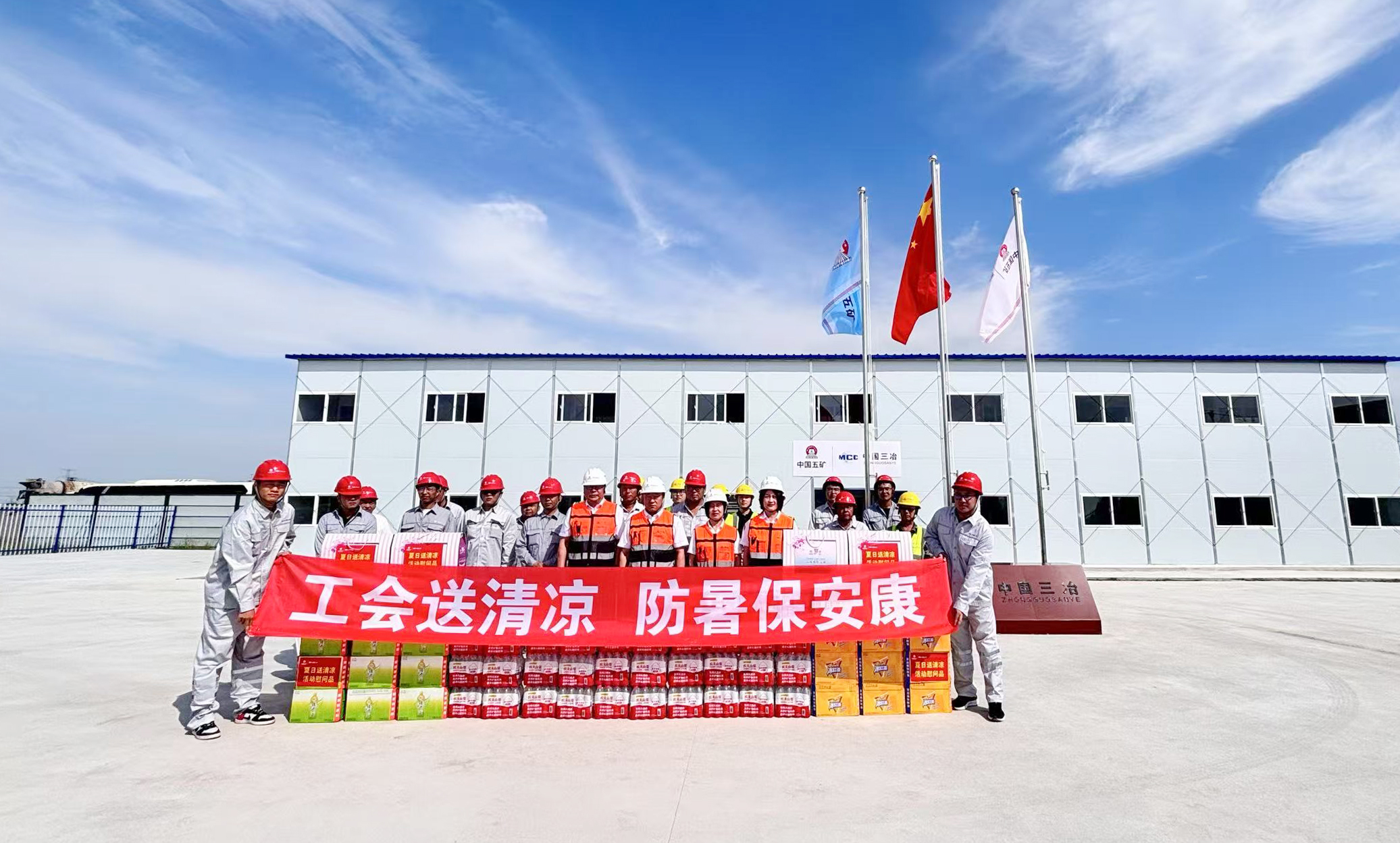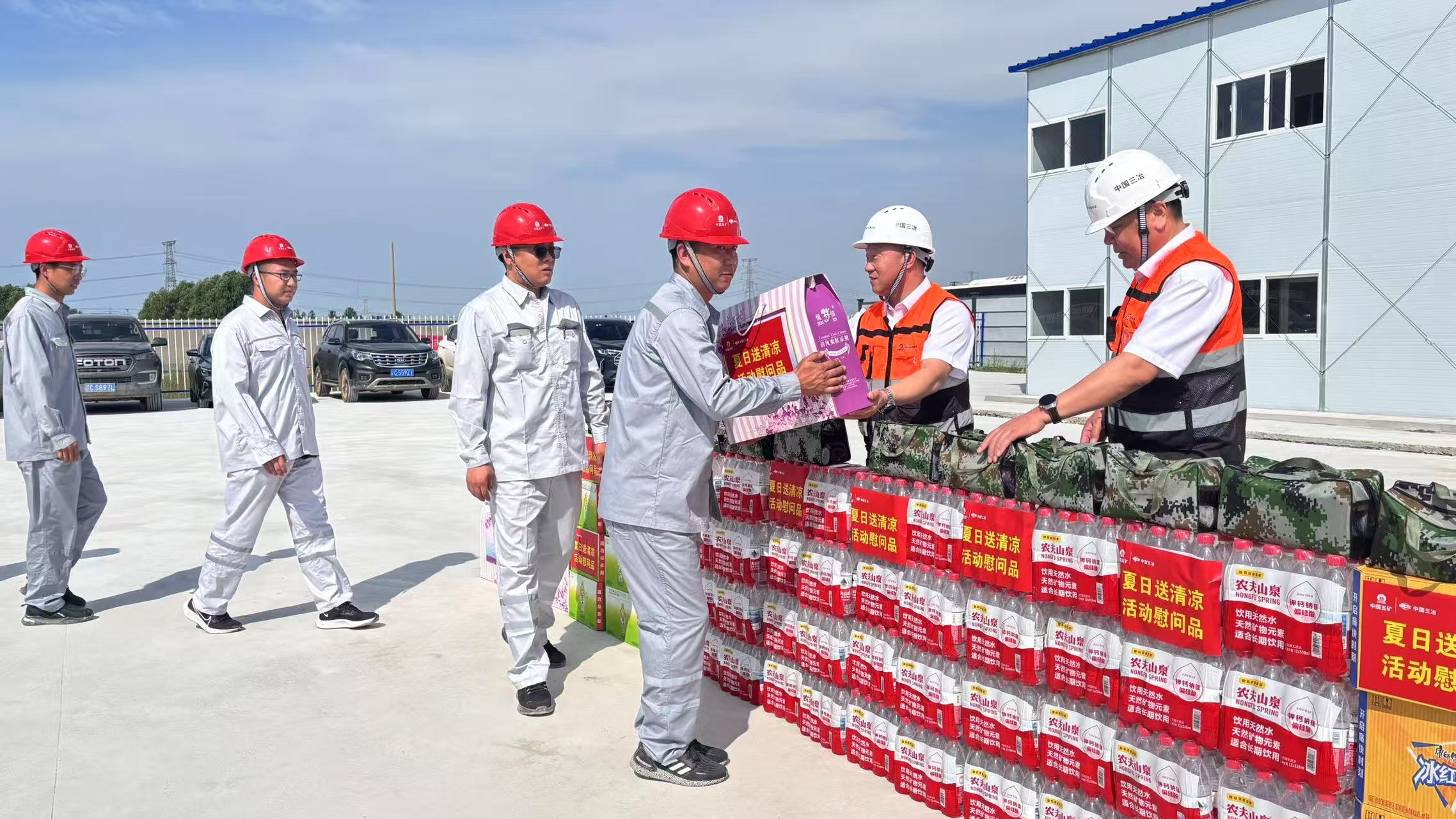 8月13日,中國三冶黨委副書記、工會主席馮永德深入工業工程公司趙平房鐵礦采選工程施工現場,開展慰問活動,為堅守在一線的干部職工送去防暑降溫物資和公司工會的深切關懷。
